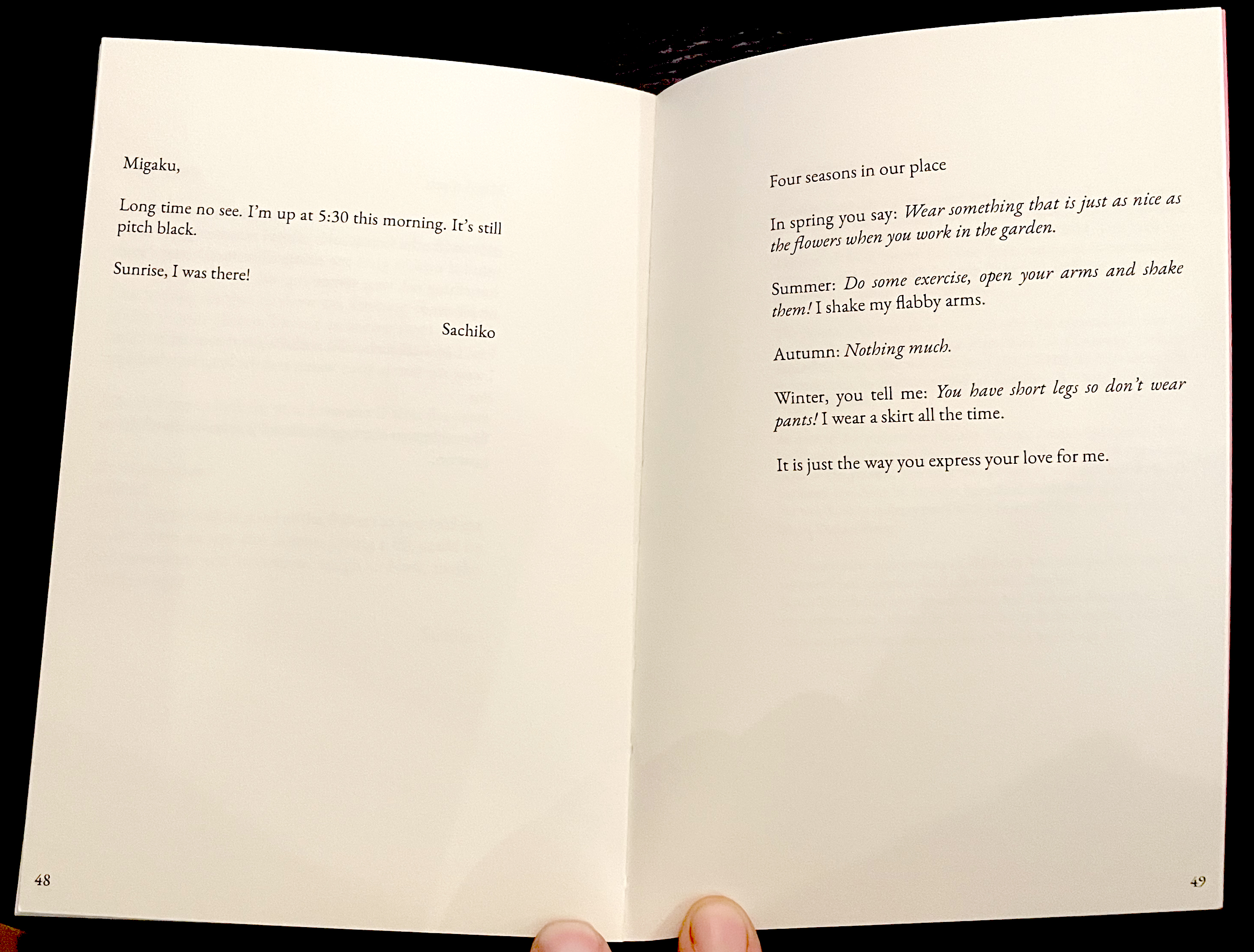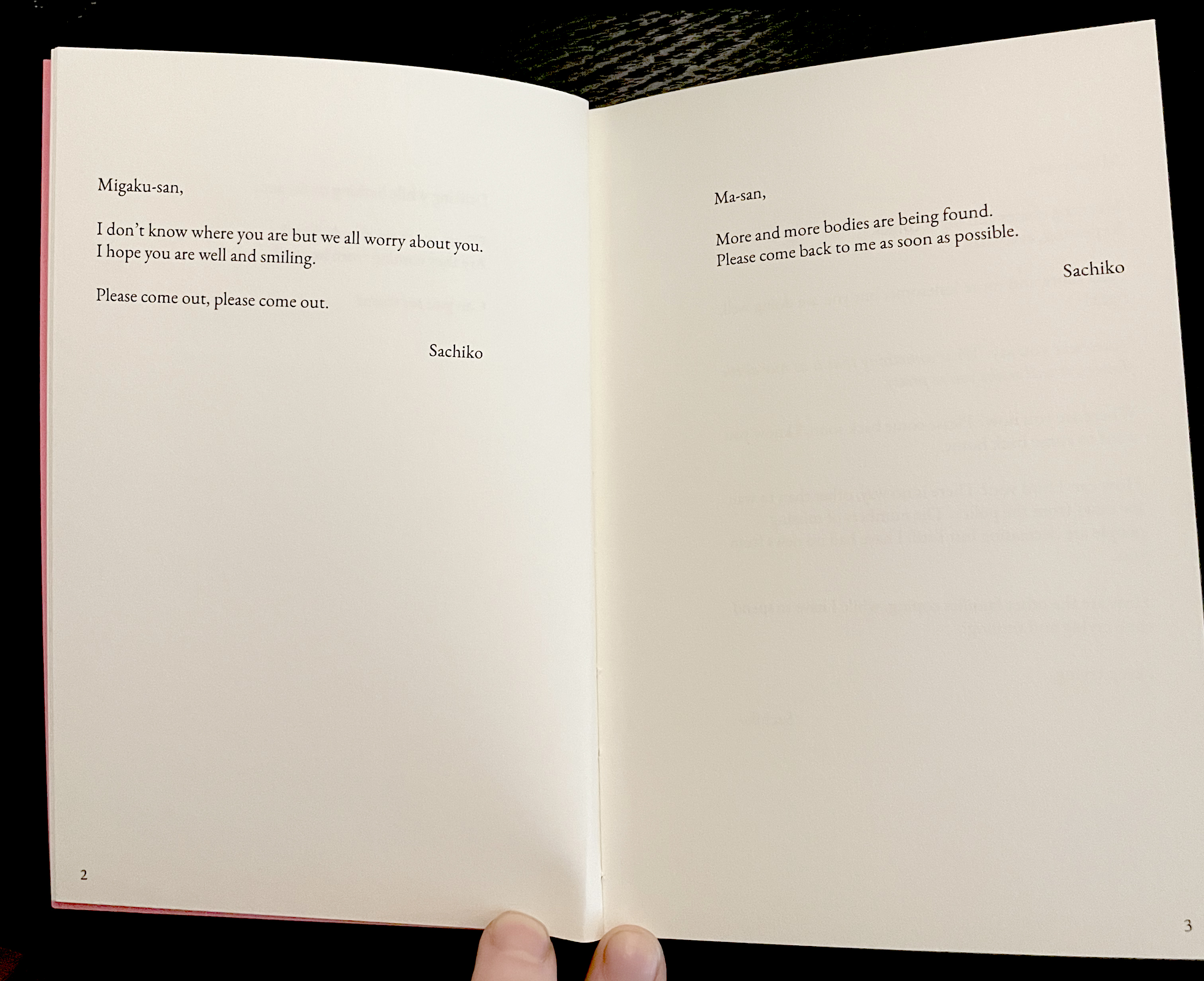 Sachiko Kumagai's letters were originally published in Japanese by Hitoshi Tsurizaki as three books containing around 300 poems from 2014 to 2018. This book is a selection of the poems translated into English, interpreted, and chosen by Jennifer Rainsford with the permission of Sachiko Kumagai's son.